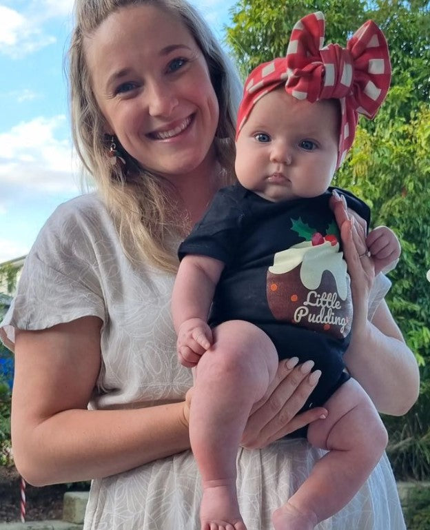You'll want to make sure your baby is comfortable, so avoid anything too heavyweight or constricting. Over here in Australia, Christmas is likely to be a pretty hot day so while you want your baby to look as cute as possible, dressing them in a heavy-knit onesie is not a practical option.