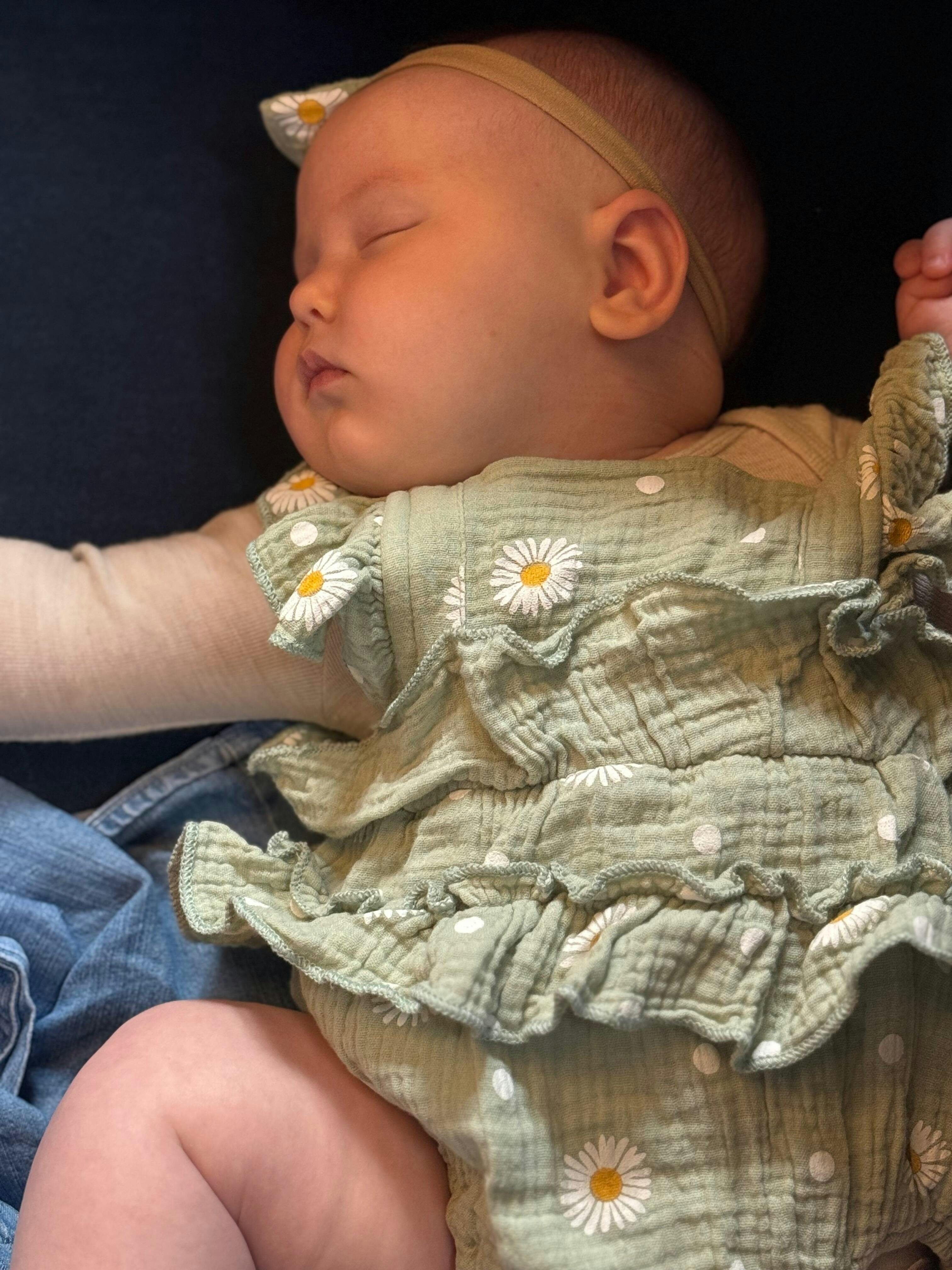 Gorgeous ruffled romper with matching headband in a timeless style.