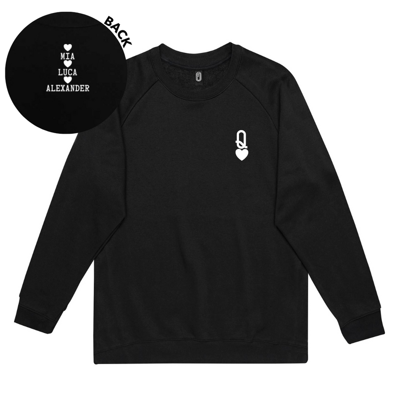 MLW By Design - Queen Of Hearts Personalised Adult Crew | Various Colours
