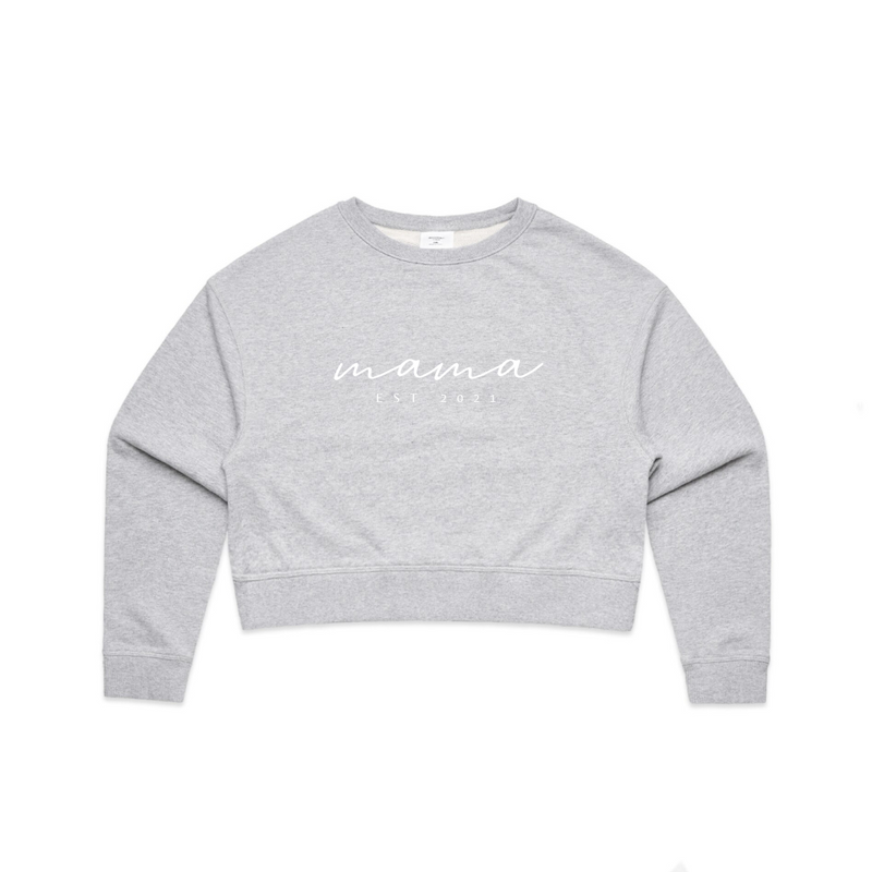 MLW By Design - Personalised Established Mama Adult Crop Crew | Various Colours
