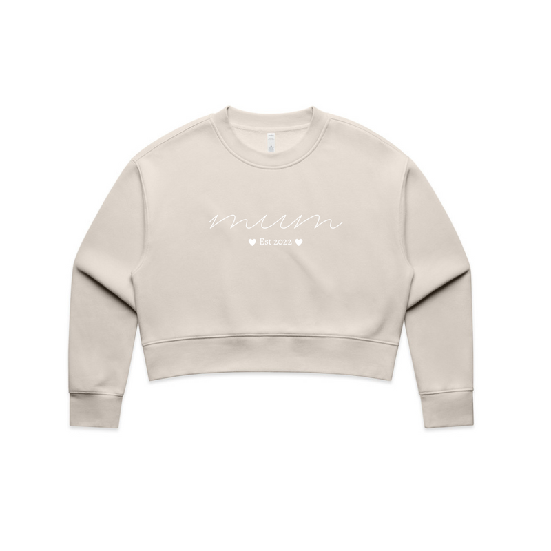MLW By Design - Personalised Established Mum Adult Crop Crew | Various Colours