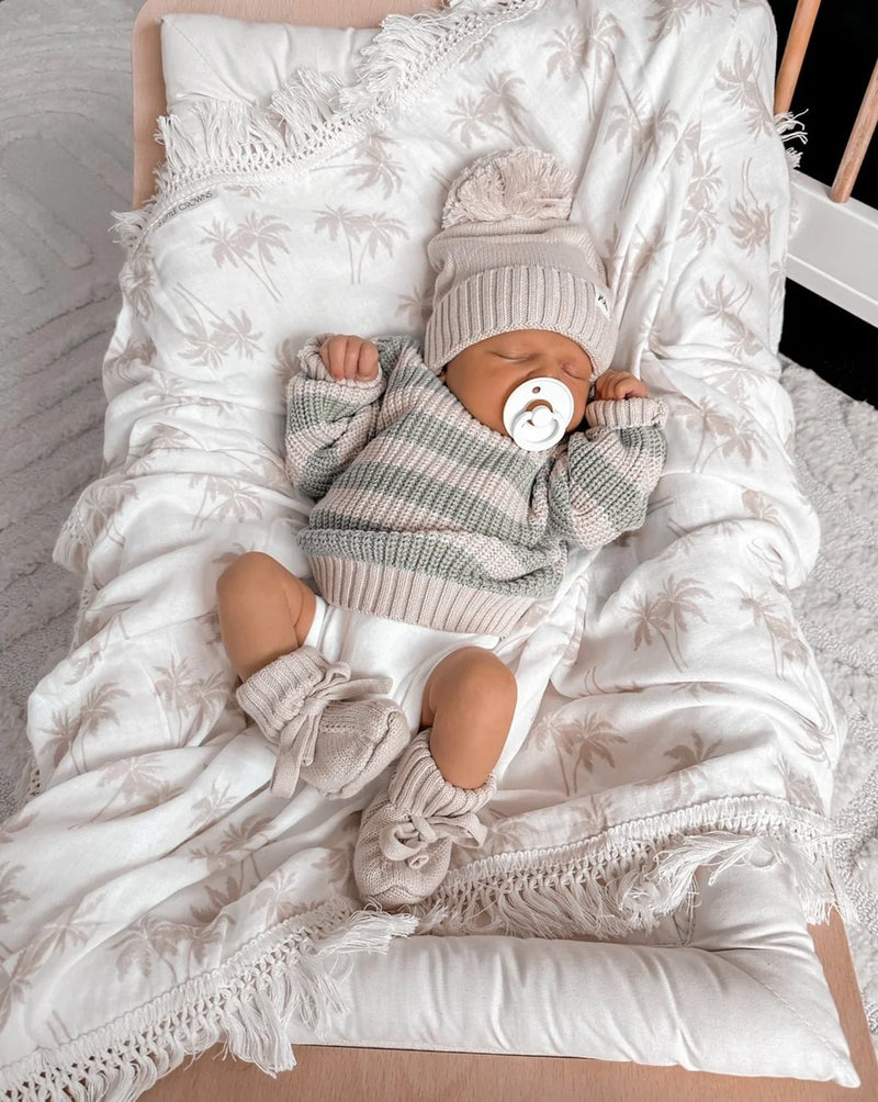 3 Little Crowns - Fringe Swaddle Blanket | Palm