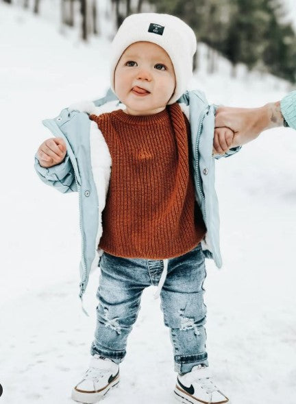 Whether you’re looking for cosy basics like cuddly rompers for days spent at home or neutral knitwear to dress up an outfit when you’re heading out on a coffee run together, you’ll find all of that and more at My Little Wardrobe.
